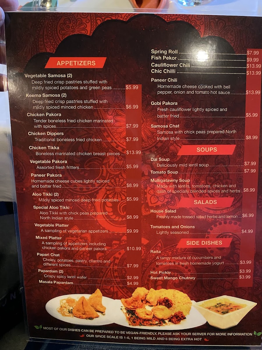 The rice selections are equally enticing, from the fragrant Vegetable Biriyani to the indulgent Shrimp Biriyani, which combines nuts and raisins for a subtle sweetness. Each dish is crafted with care, showcasing balanced spices and fresh ingredients. Dining here is a harmonious blend of tradition and taste, making Amul India Restaurant a standout for both takeout and buffet lovers.